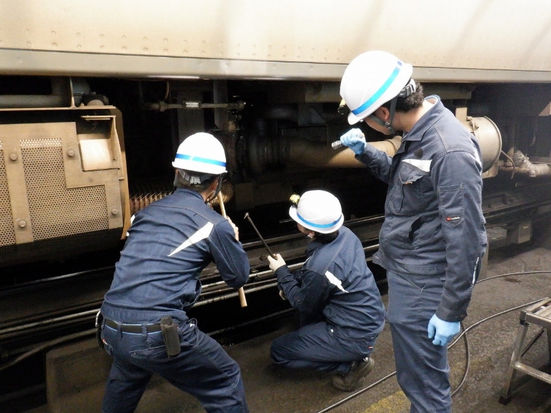 JR四国の車両基地での車両の定期点検及び多度津工場に検査入場する車両の各装置・部品の検査修繕を受託しています。